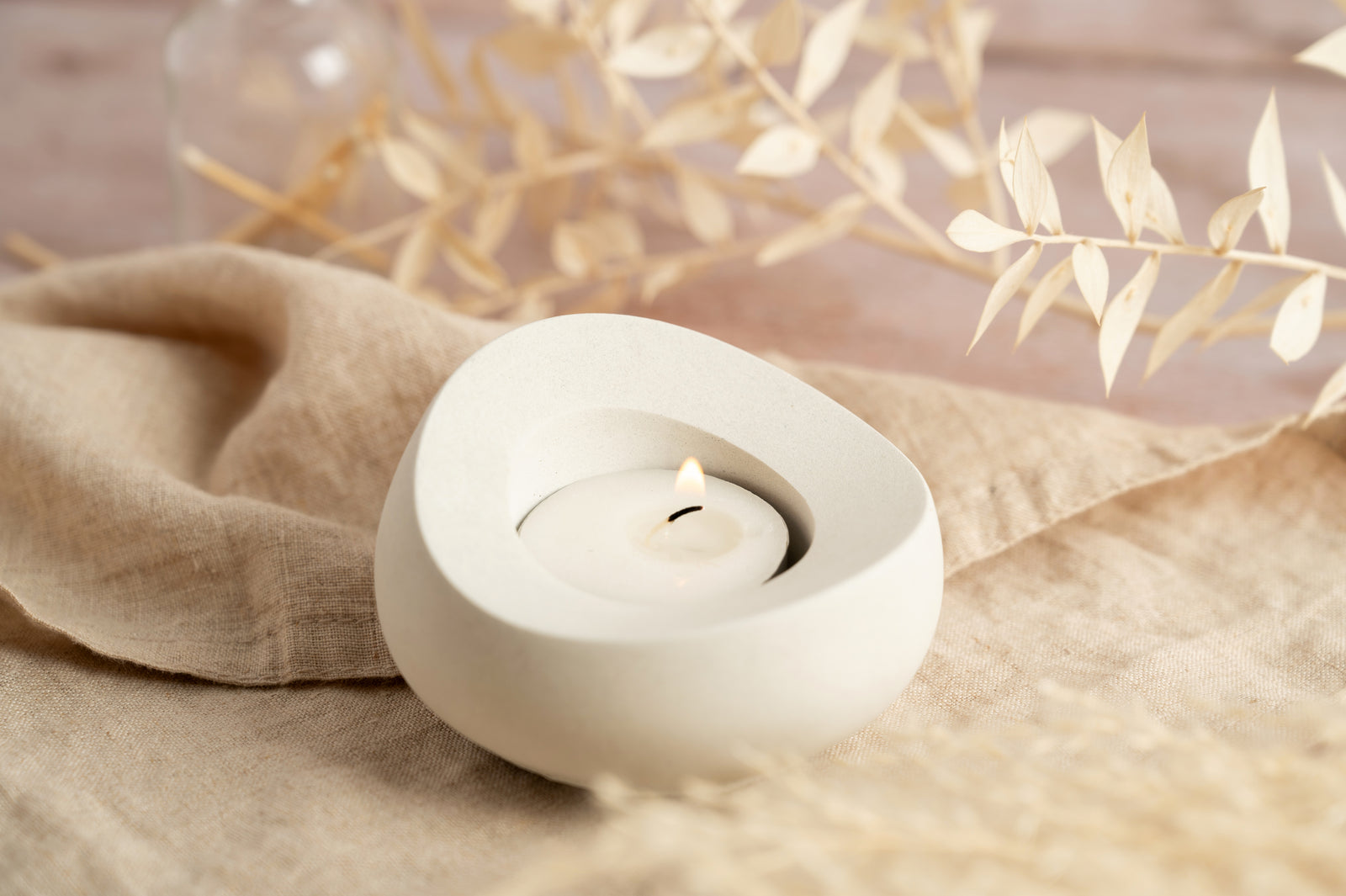 Rounded White Concrete Tea Light Holder