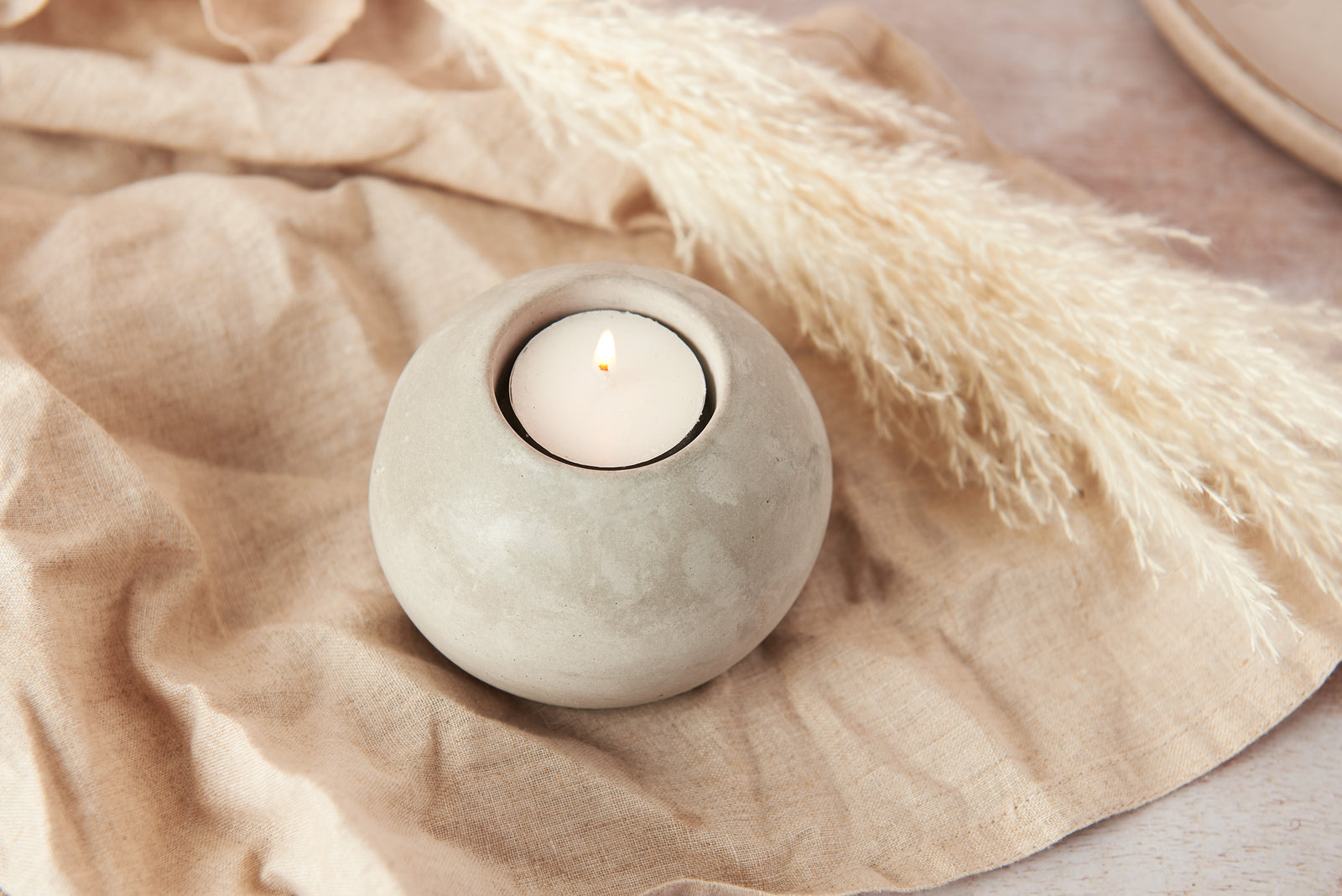 Spherical concrete tea light holder