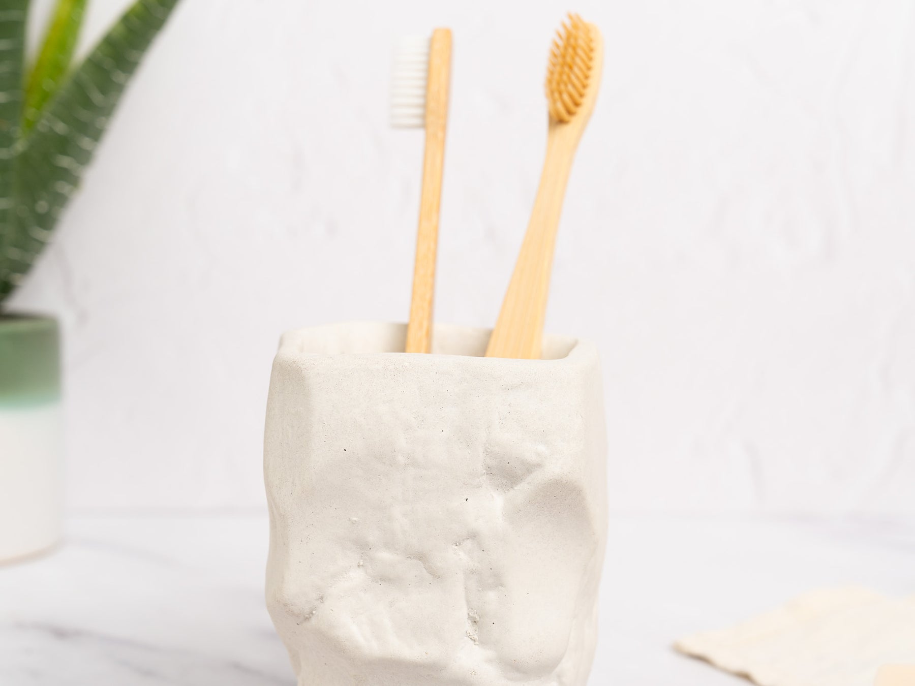 Add a touch of nature-inspired design to your bathroom with our rock-style concrete toothbrush pot. This unique pot is designed to resemble a carved rock, featuring a smooth opening at the top and a tapered, narrower base. Perfect for storing toothbrushes in a stylish and unconventional way, it brings a modern, earthy vibe to your bathroom. Available in various colors to match your decor, this pot blends function with natural aesthetics.