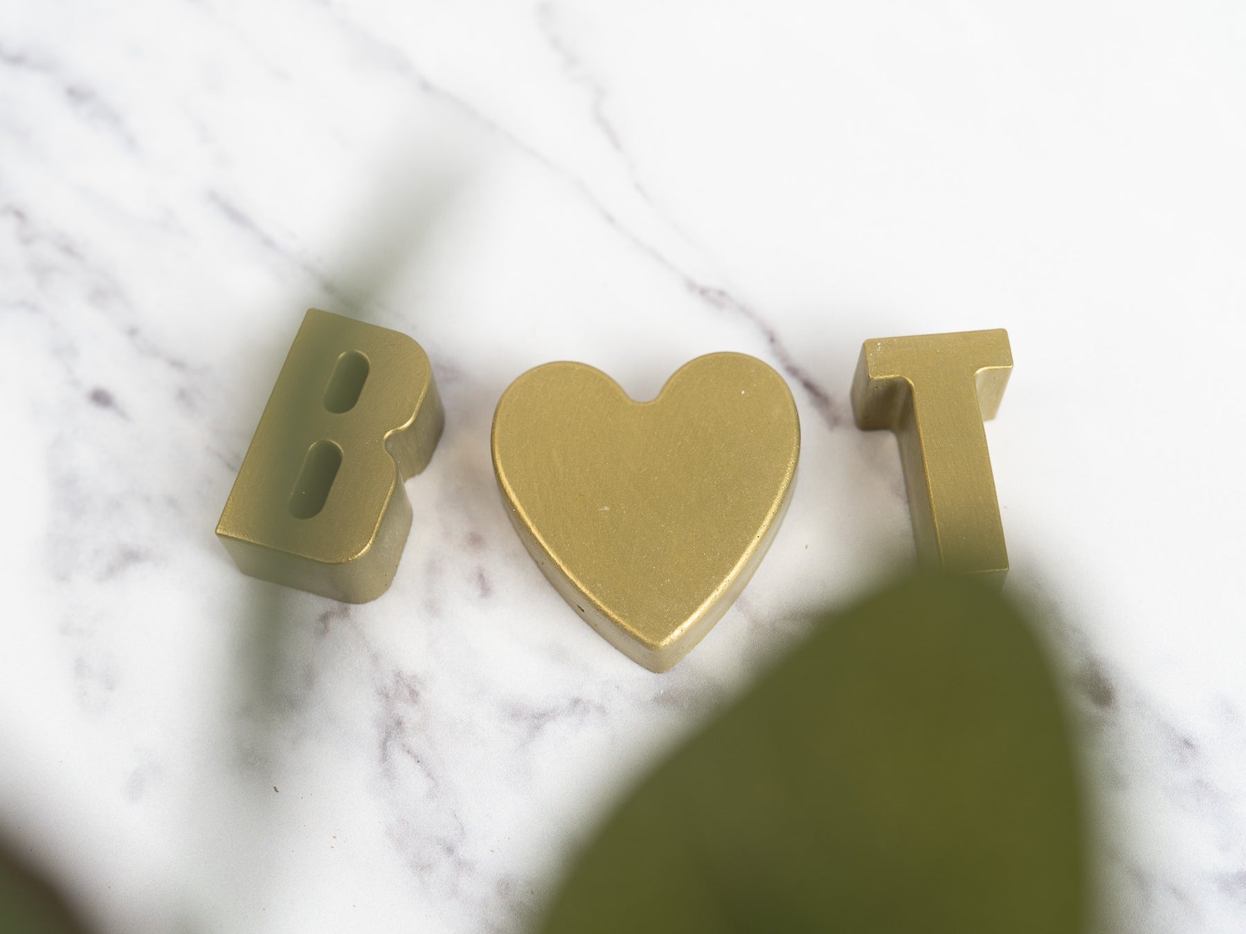 Add a personal touch to your space with our Individual Concrete Gold Letters, meticulously handcrafted in our Bristol studio. Available to order individually, each letter features a stylish Gold painted finish. Crafted from durable concrete, these pieces combine aesthetic appeal with functional durability.