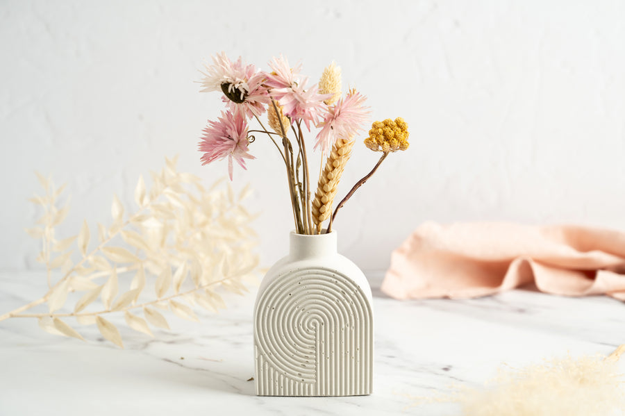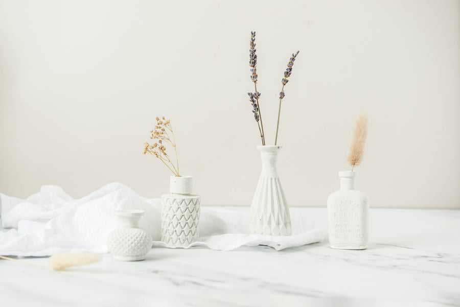 Our stunning collection of concrete vases, perfect for dried flowers.