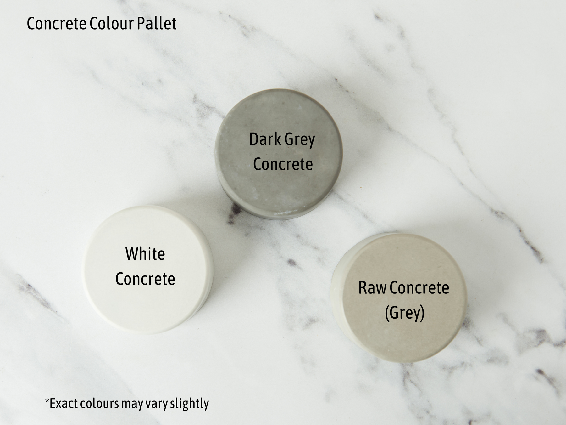 Concrete is a live product, it may age and change colour or finish over time with exposure to the air or with repeated use.