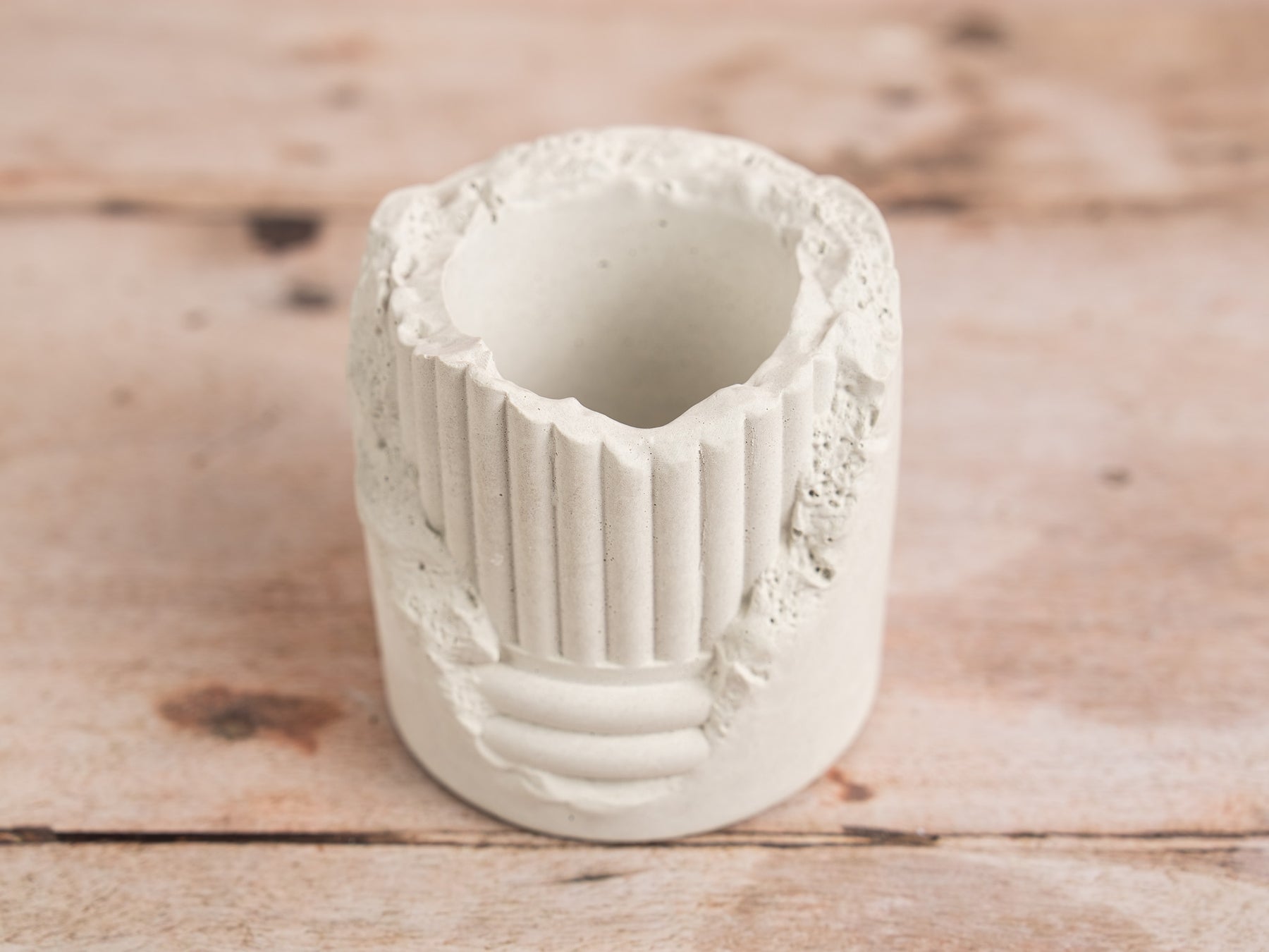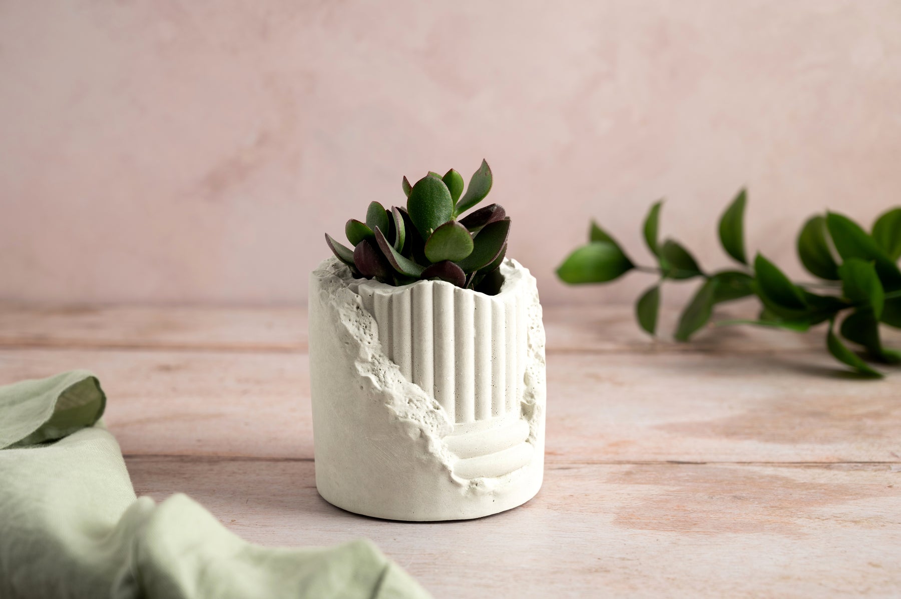 Our cracked pillar plant pot features a striking design with a central void, perfect for displaying small cacti or succulents. The cracked texture gives it a unique, rugged aesthetic, adding a bold statement to your indoor garden. Available in various concrete colors, this pot is both durable and stylish, offering a modern way to showcase your favorite plants.