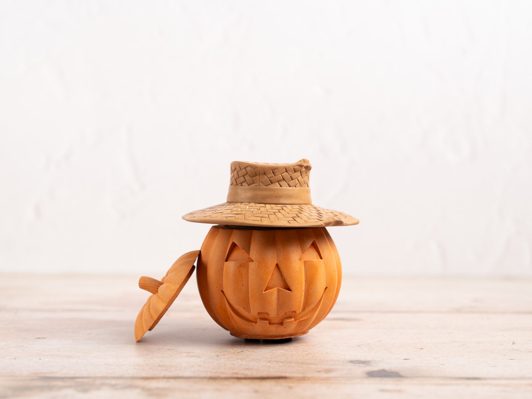 Celebrate the season with our handcrafted Concrete Jack-O’-Lantern Pumpkin, complete with a rustic straw-style hat. Carefully made in our Bristol studio, this charming piece brings a playful yet elegant touch to your autumn and Halloween decor.